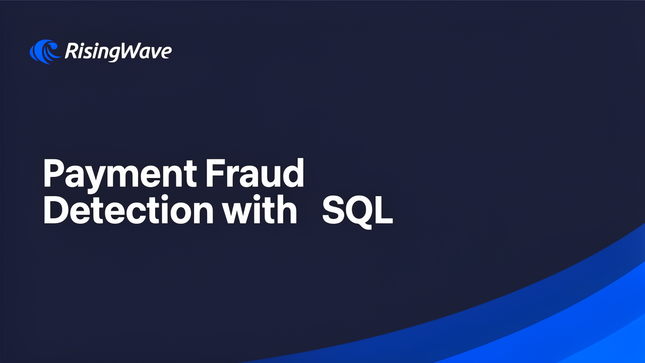 This tutorial walks you through building four real-time payment fraud detection patterns using streaming SQL in RisingWave, a streaming database that lets you write materialized views in standard SQL. Each pattern is verified against a running RisingWave instance (v2.8.0) with actual output included. By the end, you will have a composite risk scoring system that combines all four signals and automatically recommends block, review, or allow actions for every account.