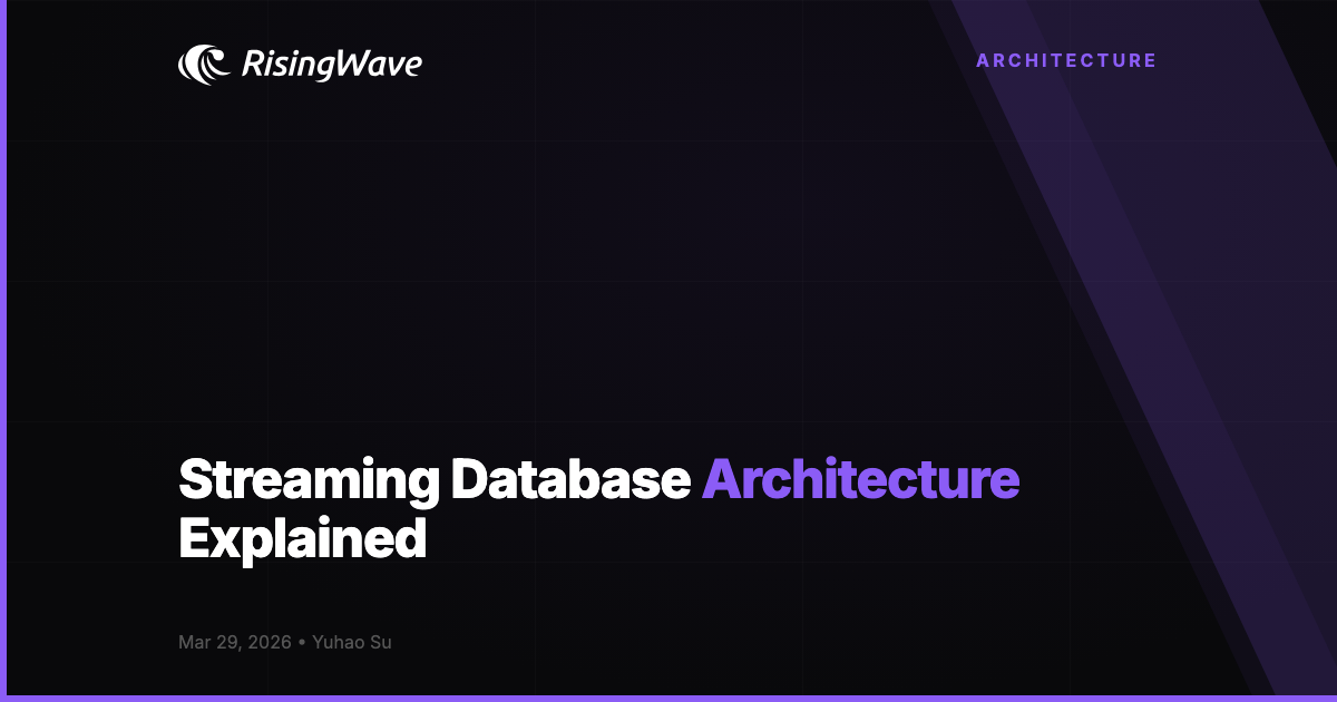 But how does this actually work? What architectural decisions make continuous computation possible without reprocessing everything from scratch? This article breaks down the internal architecture of a streaming database, explains each layer, and shows you the concepts in action with verified SQL examples running on RisingWave v2.8.0.